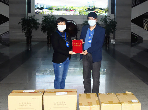 爱心捐赠,共克时艰。新冠肺炎疫情发生以来,广大校友及校友企业一直关心关注并积极支持母校的疫情防控工作,累计已为学校捐赠了七批防疫物资,成为学校防控疫情的强大后援。近日,技物87级杨世东校友为了帮助学校提高防疫应急效率、保障师生复学后的健康安全,代表联合创始企业“上海护净新材料科技有限公司”与学校教育发展基金会签订了捐赠协议,为学校捐赠“护净TM空气消毒机”2台、“护净TM空气消毒卡”600盒,总价值共计6.7万元。
