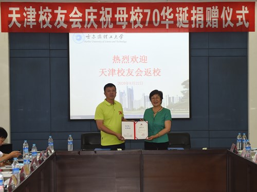 陆岩副书记向天津校友会颁发捐赠证书